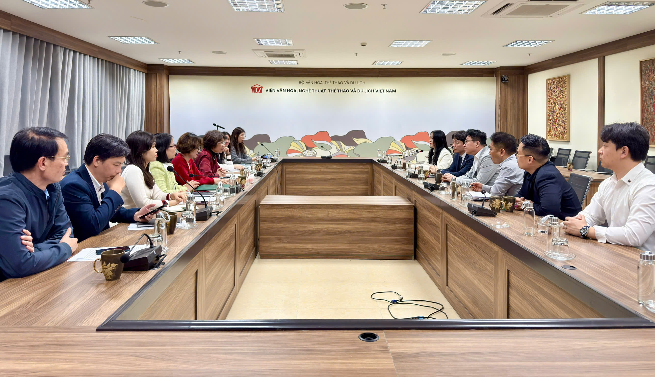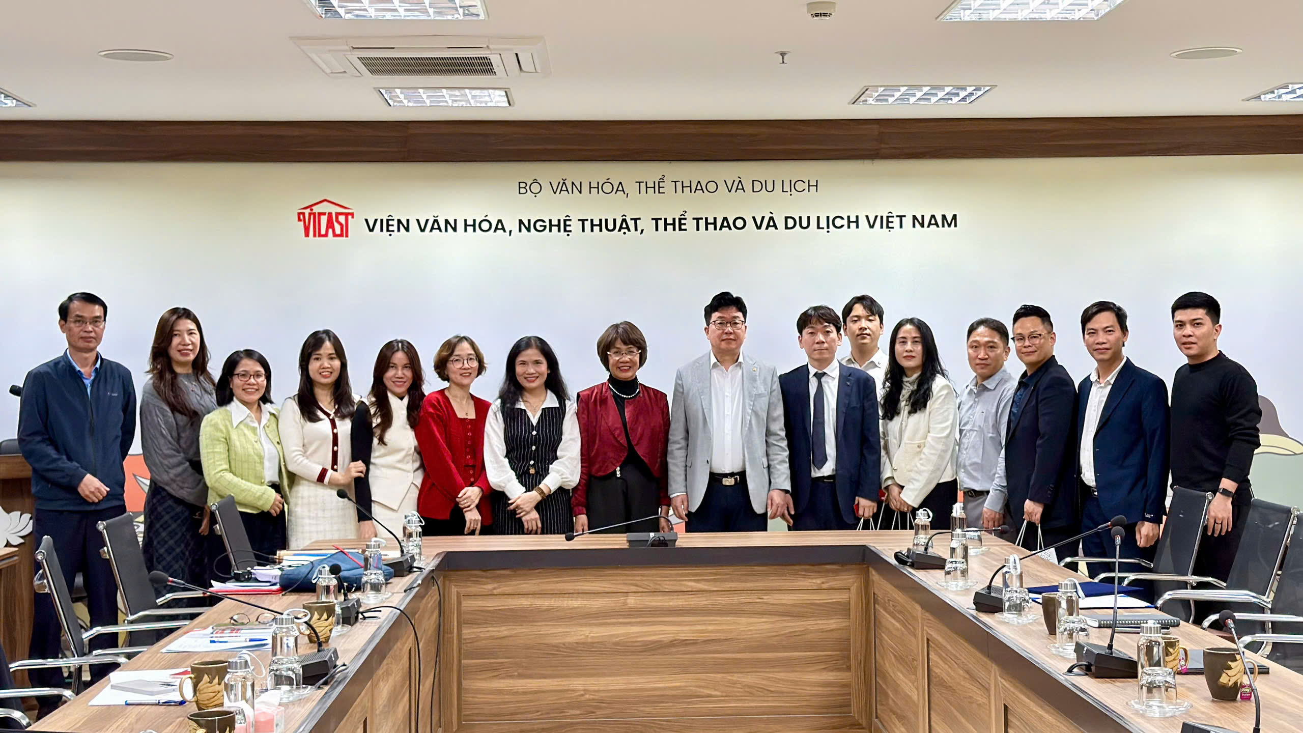 Chiều ngày 30/01/2026, tại trụ sở Viện Văn hóa, Nghệ thuật, Thể thao và Du lịch Việt Nam (VICAST), PGS.TS Nguyễn Thị Thu Phương - Viện trưởng cùng Ban lãnh đạo Viện đã có buổi tiếp đón và làm việc chính thức với Đoàn đại biểu Trường Đại học Chosun (Hàn Quốc) do Hiệu trưởng Kim Choon Sung làm Trưởng đoàn. Buổi gặp gỡ đánh dấu bước tiến quan trọng trong việc cụ thể hóa các cam kết hợp tác, mở ra nhiều triển vọng thiết thực trong đào tạo và nghiên cứu khoa học.