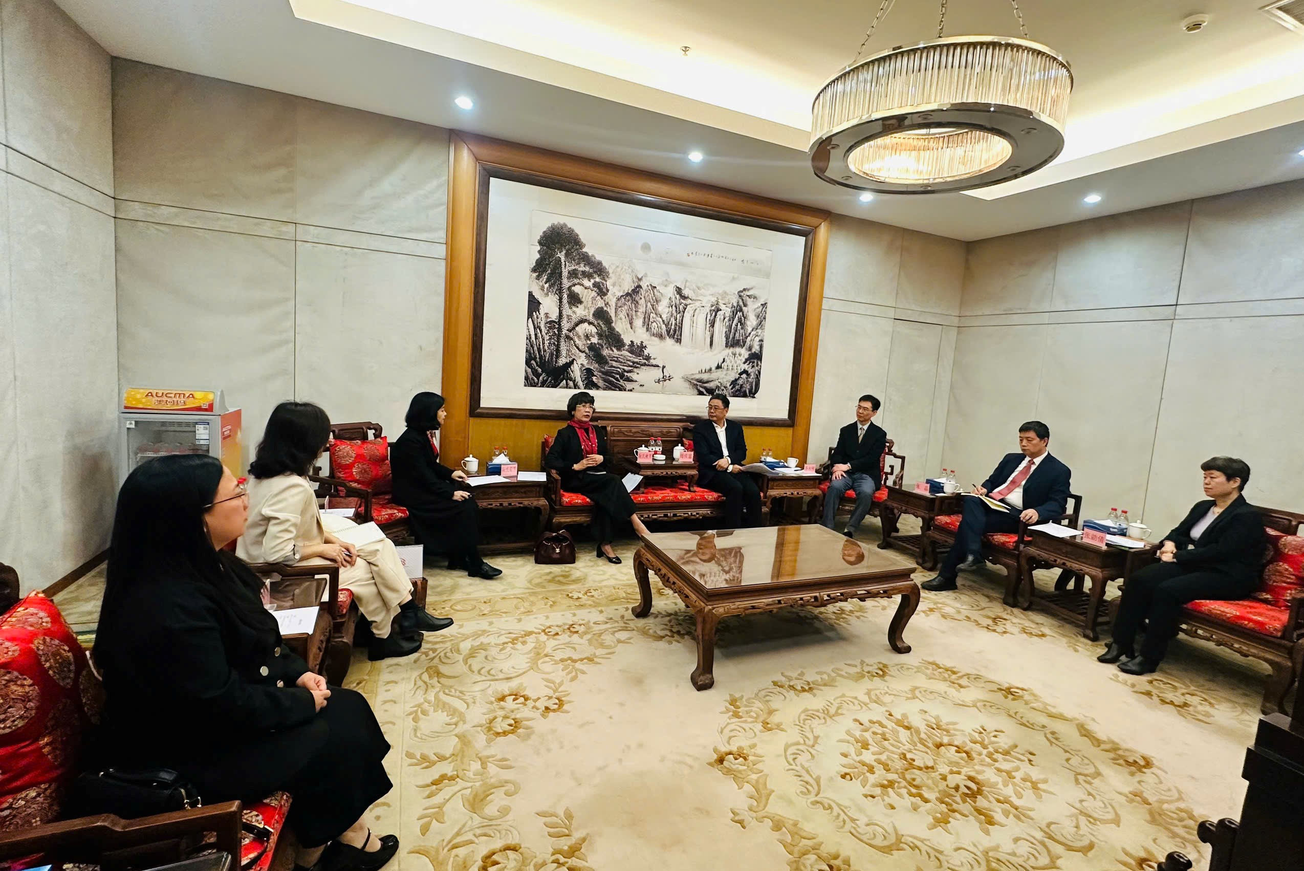 Tại Bắc Kinh (Trung Quốc), đoàn Viện Văn hóa, Nghệ thuật, Thể thao và Du lịch Việt Nam do PGS.TS. Nguyễn Thị Thu Phương – Viện trưởng làm trưởng đoàn đã có buổi tọa đàm và làm việc với Viện Nghiên cứu Nghệ thuật Trung Quốc, trong khuôn khổ triển khai thực hiện đề tài khoa học cấp quốc gia “Bảo tồn và phát huy giá trị nghệ thuật truyền thống trong bối cảnh phát triển kinh tế thị trường và hội nhập quốc tế” do PGS.TS. Tạ Quang Đông làm chủ nhiệm.