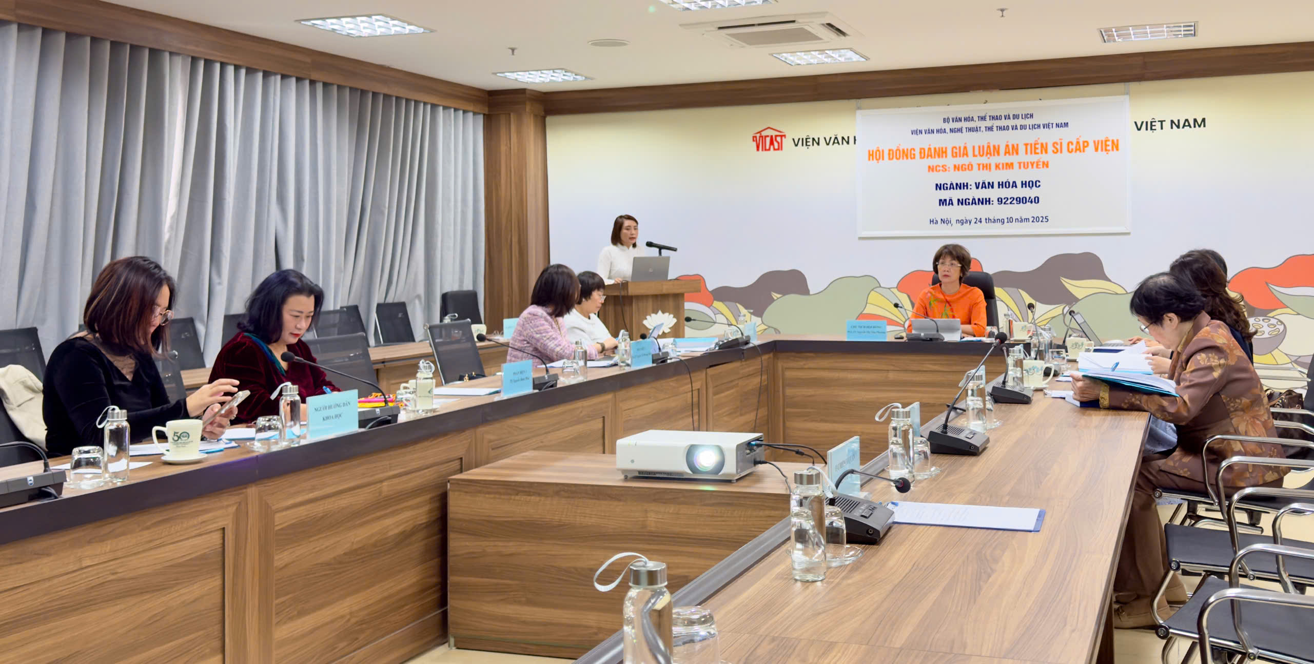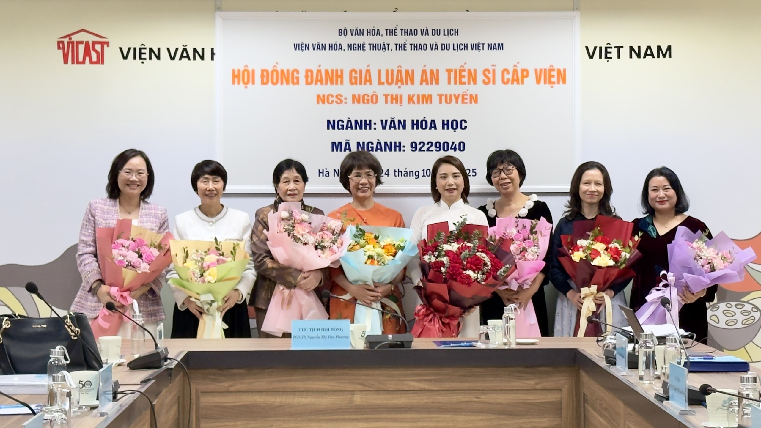 Sáng ngày 24/10/2025, Viện Văn hóa, Nghệ thuật, Thể thao và Du lịch Việt Nam tổ chức lễ bảo vệ luận án tiến sĩ cấp Viện cho NCS Ngô Thị Kim Tuyến với đề tài: Biến đổi văn hóa làng nghề đá mỹ nghệ Ninh Vân, xã Ninh Vân, thành phố Hoa Lư, tỉnh Ninh Bình, chuyên ngành: Văn hóa học, mã số: 9229040, do TS. Trần Thị Kim Quế và TS. Vũ Diệu Trung, đồng hướng dẫn.
